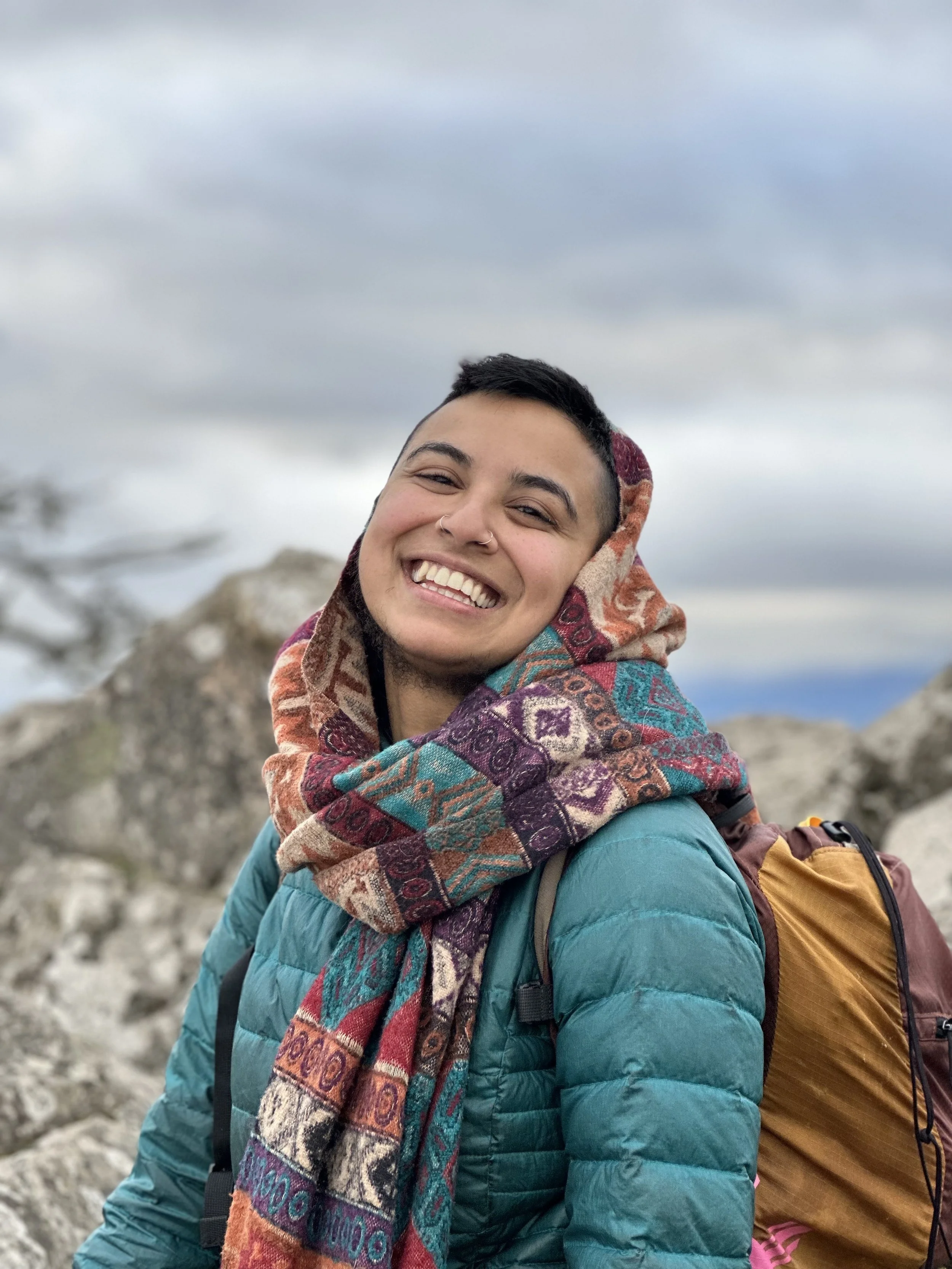 Sindhu Muthusamy (he/they) is a South Indian genderqueer transmasc person living in unceded Ohlone land, also known as Oakland, California. They are a weaver of dreams, images, and stories, and a lover of herbalism and visual arts. They work as an occupational therapist and are passionate about gender affirming care. They prefer to spend their time dipping in any fresh body of water or giggling with friends.